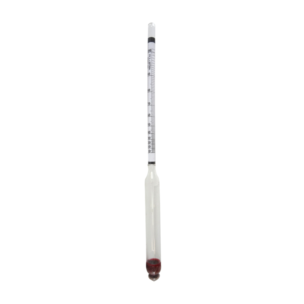 Vervaardigd van glas. Alcohol meter type zoeker. Gekalibreerd bij 20 °C. Lengte 295 mm, Ø 17,5 mm. Dubbele schaalverdeling. Schaal 1: onderverdeling 1%. Schaal 2: onderverdeling 0,5°. Certificaat niet inbegrepen
