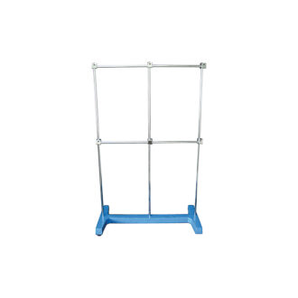 Met stevige voet, 3 verticale staven met de hieronder aangegeven diameter (Ø) en hoogte (h), 2 horizontale staven met de hieronder aangegeven diameter (Ø) en lengte (l) en 6 moeren